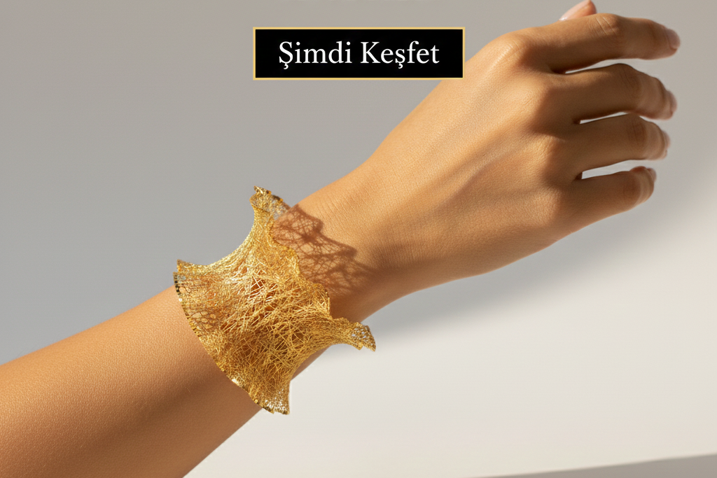 22 Ayar Altın Kaplama Zarif Tül Desenli Bilezik – Özel Tasarım Kadın Takı